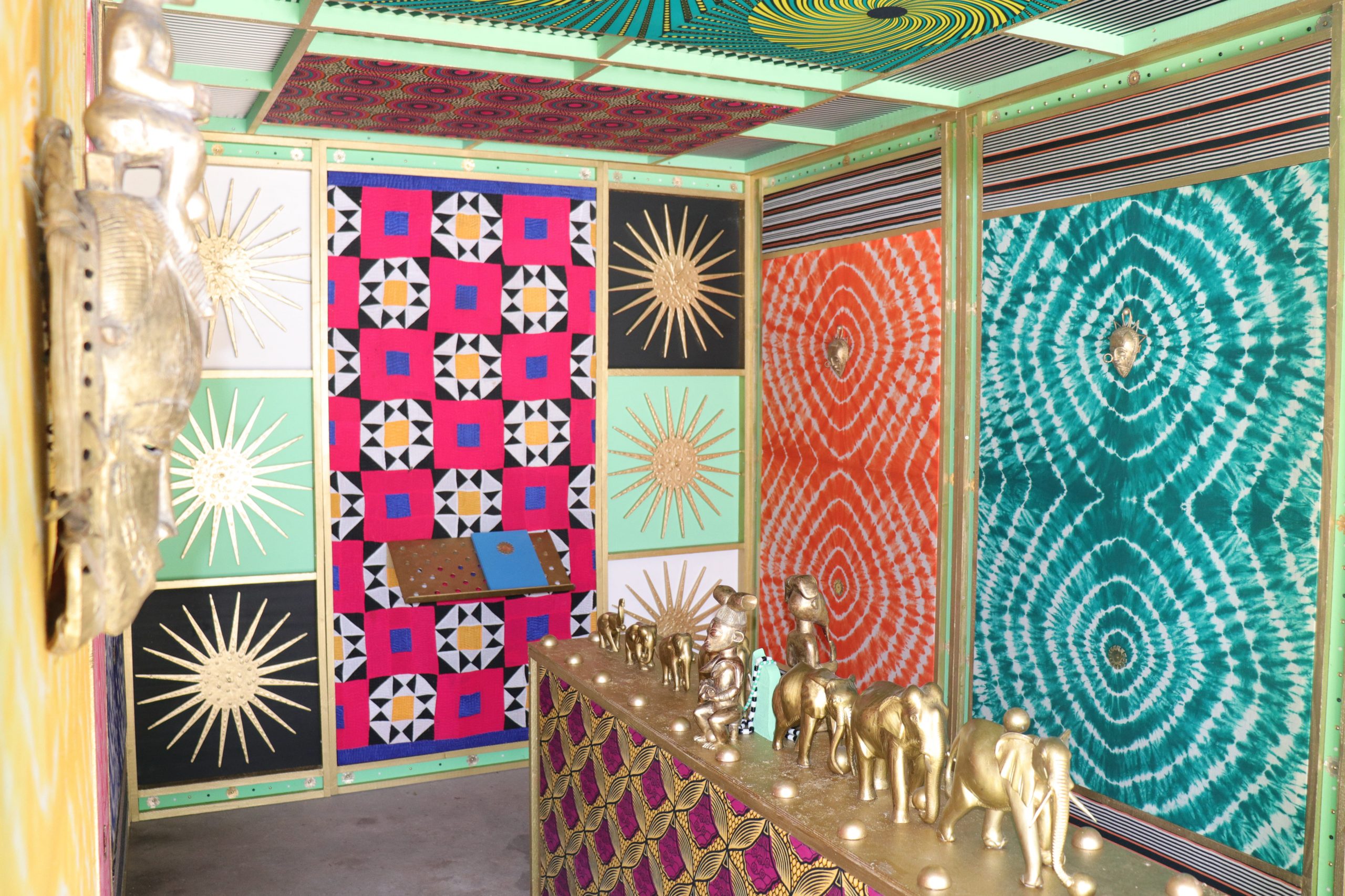 3,95m x 2,30m x 2,30m, Peintures, tissus, collages, 2021.