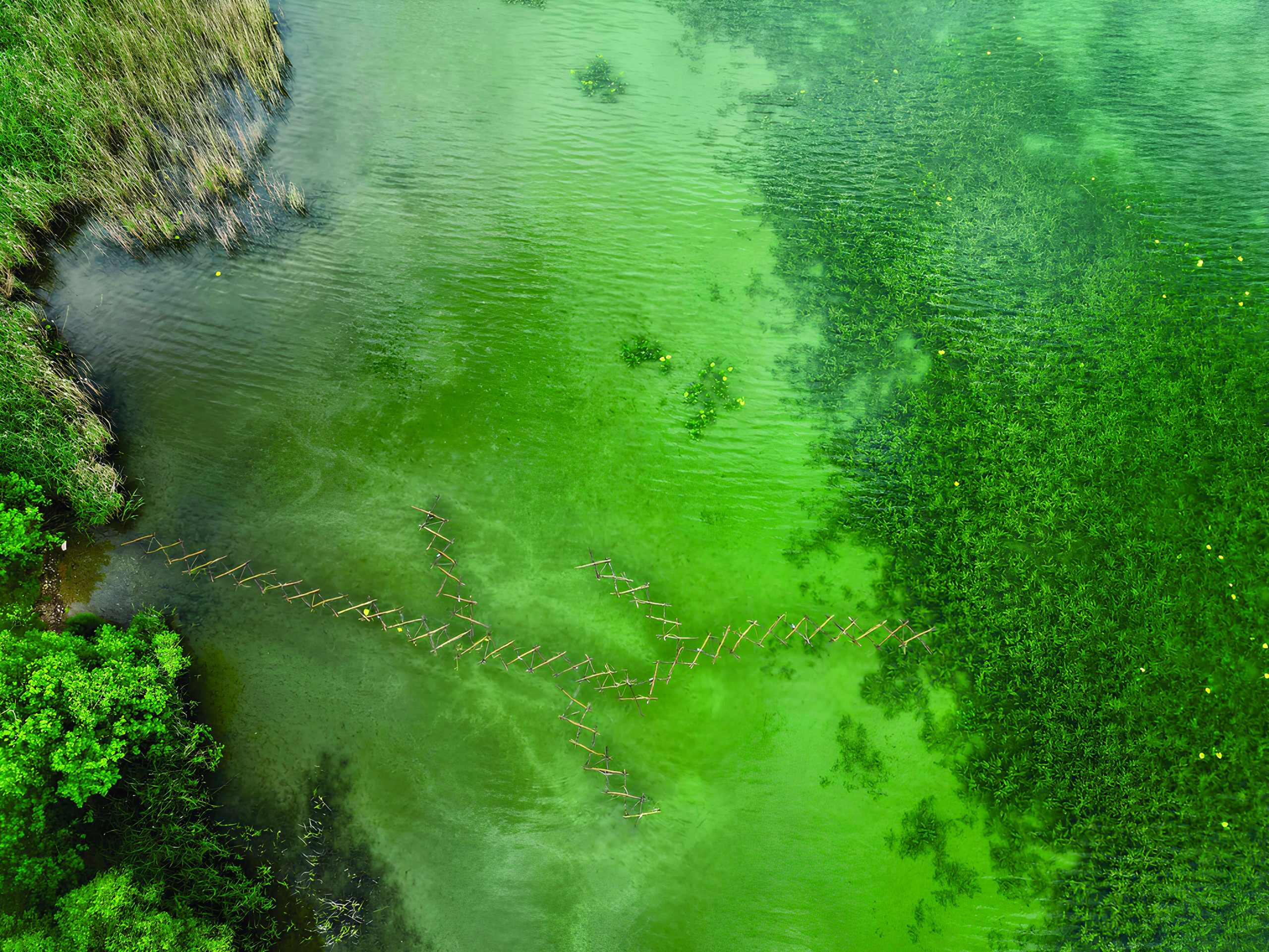 70 cm x 150 cm, Fagots de bois, ficelle, flotteurs, 2025.