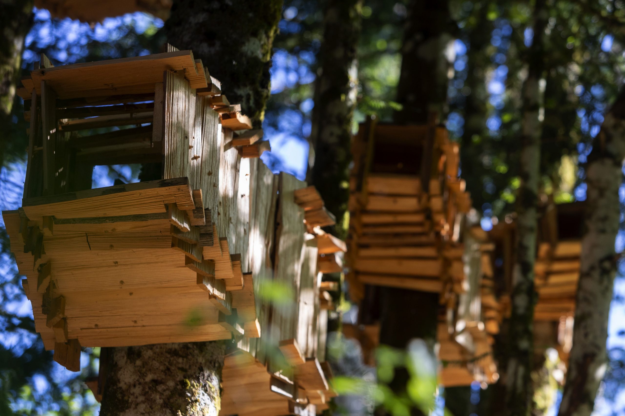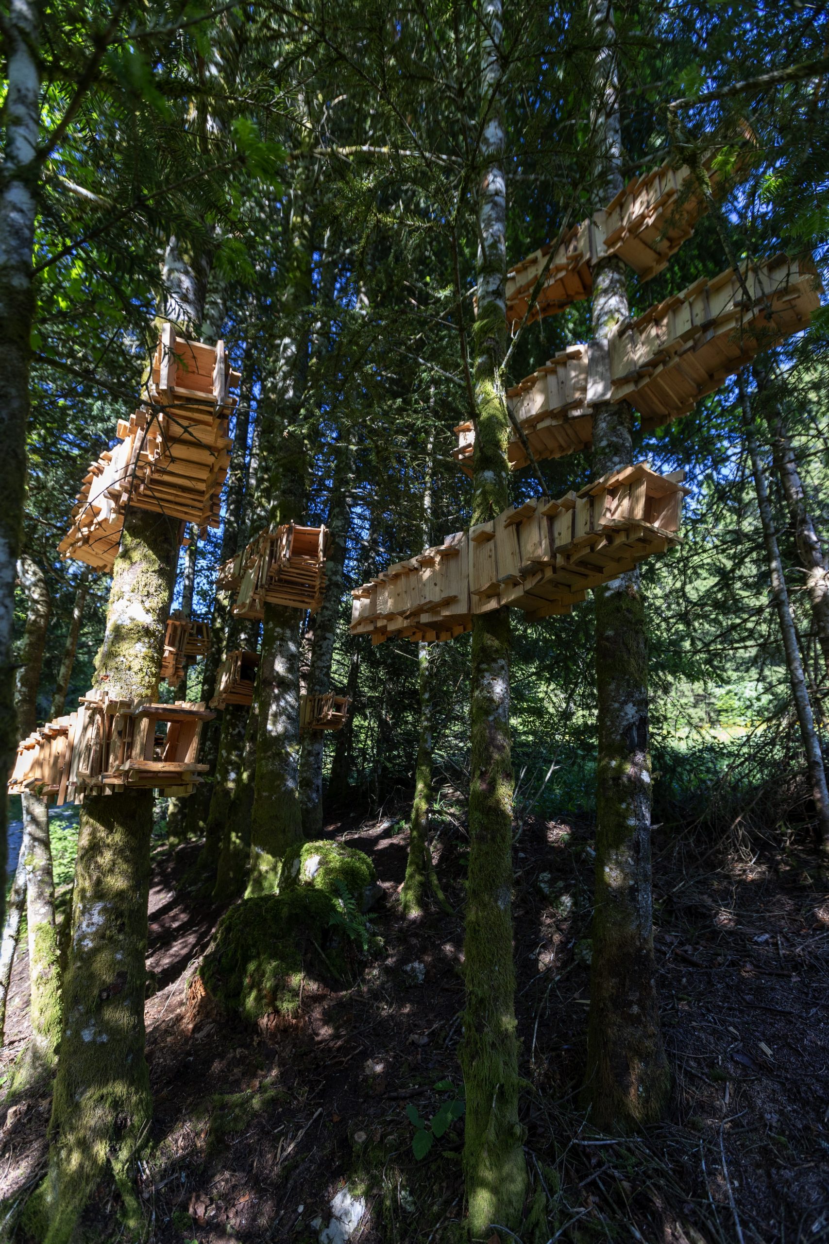 14 éléments, dimensions variables, céramique, bardeaux d’épicéa